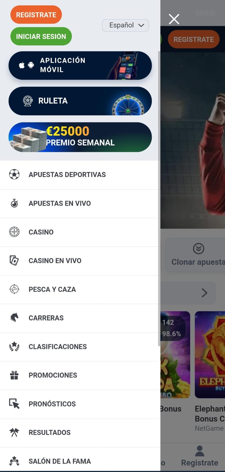 Del mismo modo, su menú desplegable proporciona numerosos accesos útiles para las apuestas deportivas, facilitando significativamente la navegación sin sobrecargar visualmente la página, lo cual es realmente admirable.