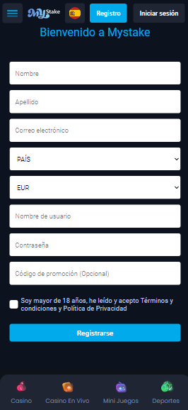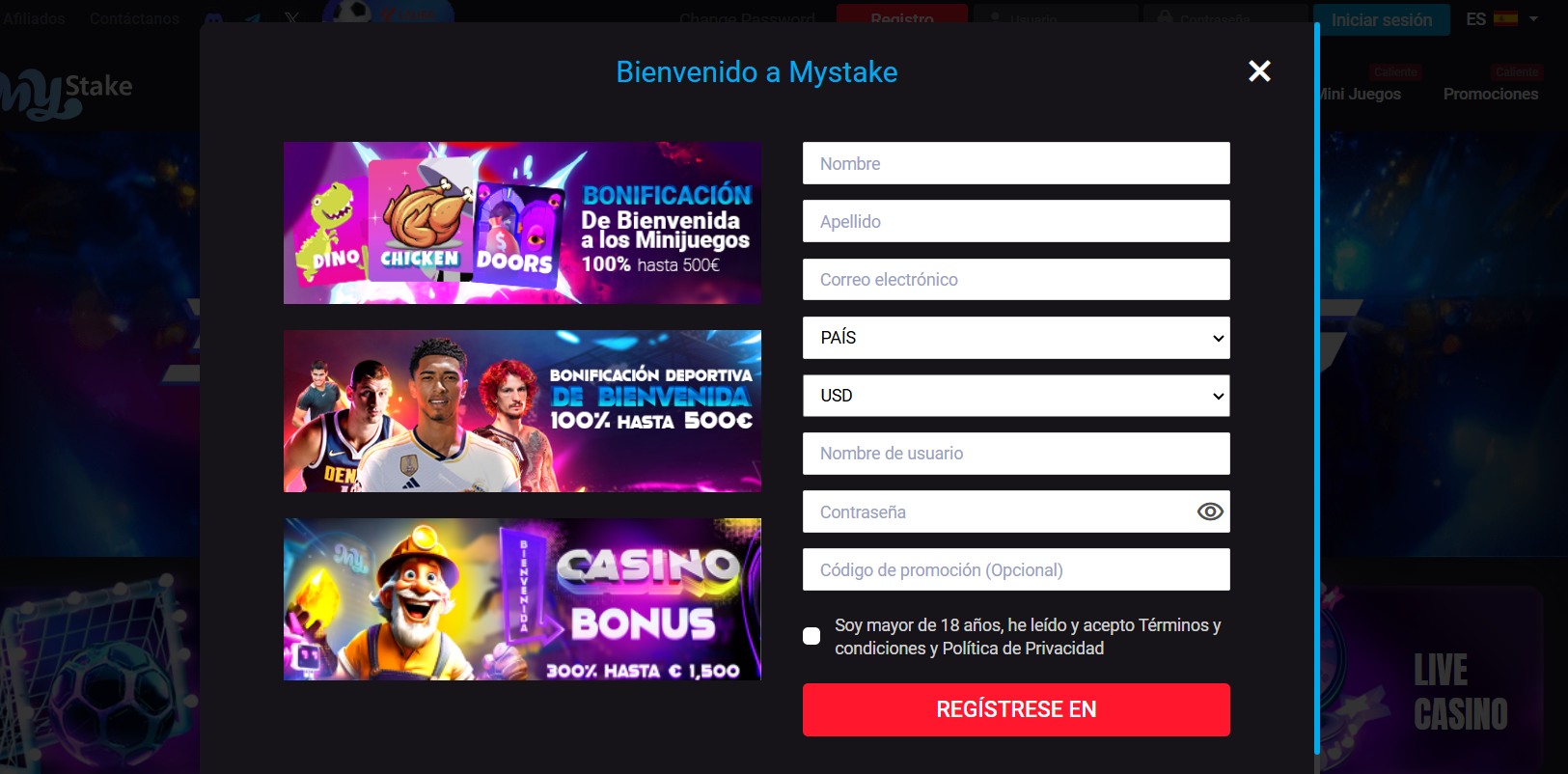 Antes de poder apostar en cualquiera de los juegos o eventos de Mystake, será necesario crear una cuenta en su página web, la cual también te dará acceso a su Mystake bono de bienvenida. Veamos cómo hacerlo: