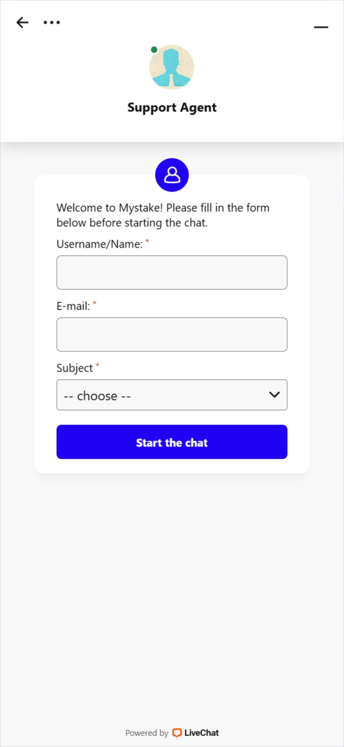 En Mystake no te dejan a tu suerte, hay muchas formas en las cuales puedes resolver tus dudas sobre cualquier tema legal, de depósito, juegos, bono, cuenta o del sitio web en general. La forma de acceder a esa ayuda es principalmente a través de su chat en vivo.