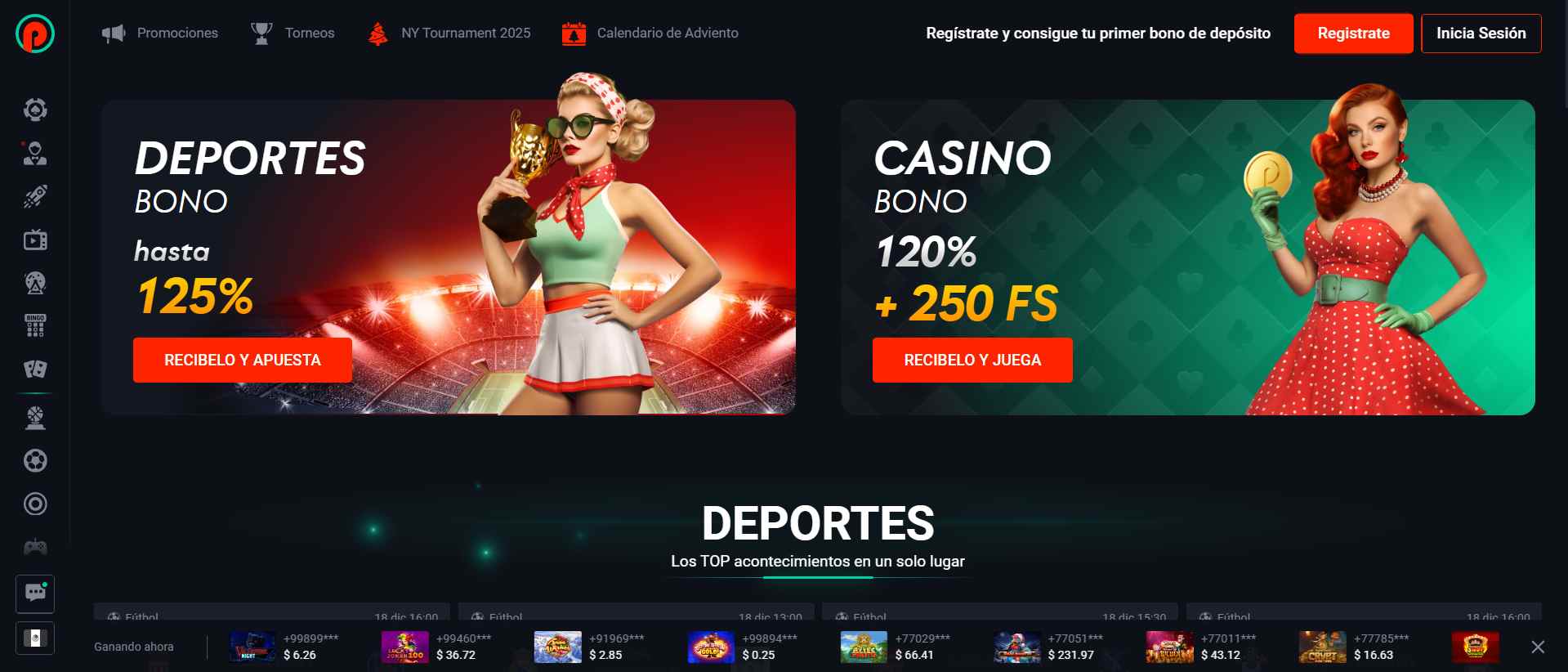 Los bonos de bienvenida son, en cierta manera, un obsequio que la casa de apuestas ofrece al nuevo cliente. En el caso de Pin-Up, este operador te regala un bono de bienvenida del 125% hasta 5 000 000 CLP para que puedas empezar a disfrutar al máximo.