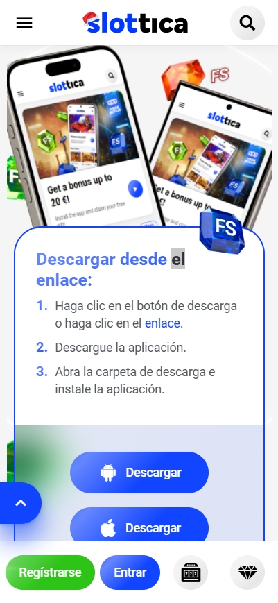 Slottica ofrece un aplicación móvil, con la que incluso puedes llevarte un impresionante bono. La aplicación puede ser descargada tanto en dispositivos Android como iOS y es muy fácil de hacerlo.
