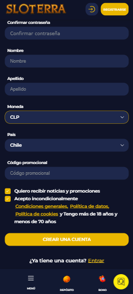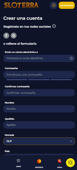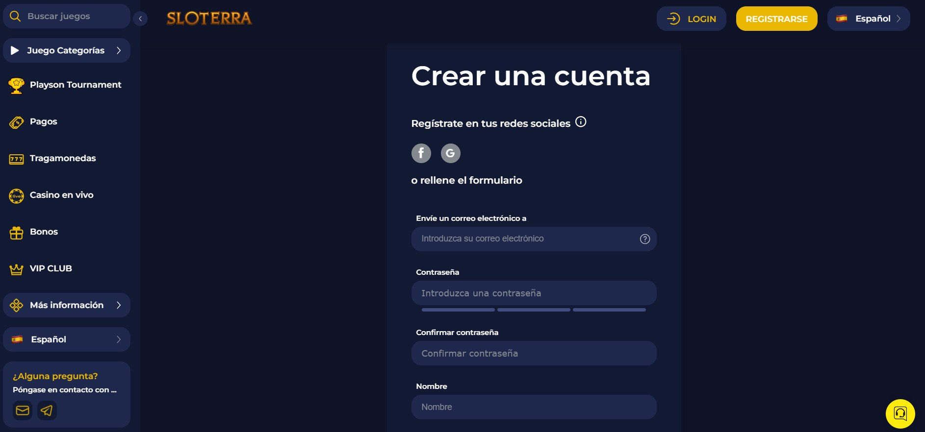 Los registros rápidos se agradecen y en Sloterra esto lo logran muy bien dando la opción de registrarse manualmente, usando tu correo electrónico o facebook. La elección es tuya pero en caso de que prefieras rellenar el formulario, aquí tenemos las instrucciones.
