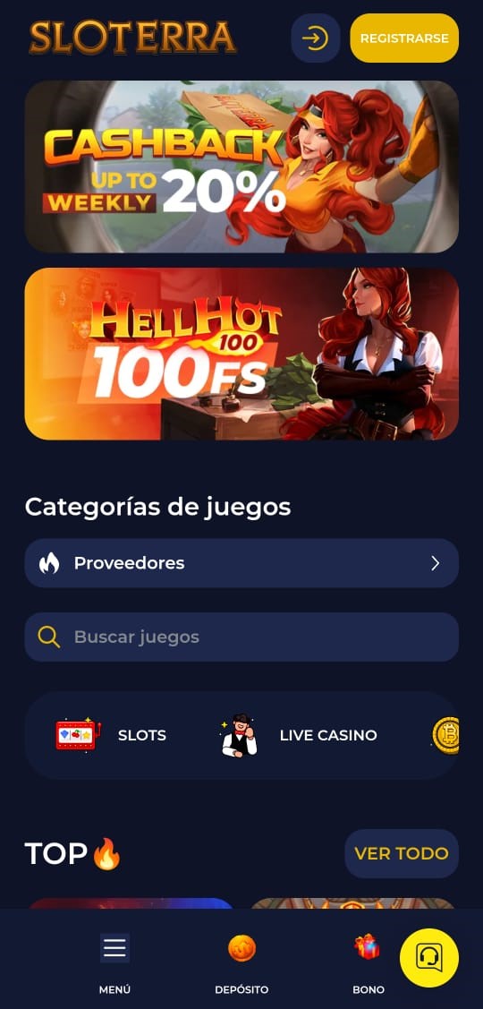 En Sloterra se encargan de que la experiencia sea agradable desde el primer momento con secciones de tragaperras y casino en vivo que van por separado y suman más de 3800 juegos en total, recordando que hablamos de un sitio que trabaja con más de 60 proveedores sumamente reconocidos.