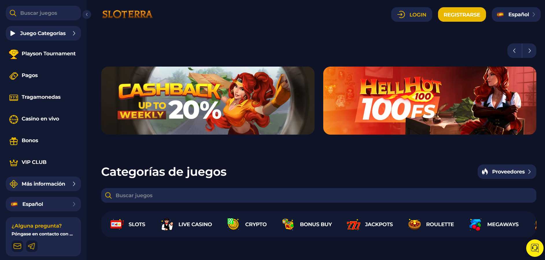 Sloterra es una plataforma que únicamente ofrece juegos de casino, esto es una excelente noticia si no tienes interés por las apuestas deportivas ya que hace posible una navegación sumamente más fácil e intuitiva porque a donde vayas, encontrarás información que sí será de tu interés.